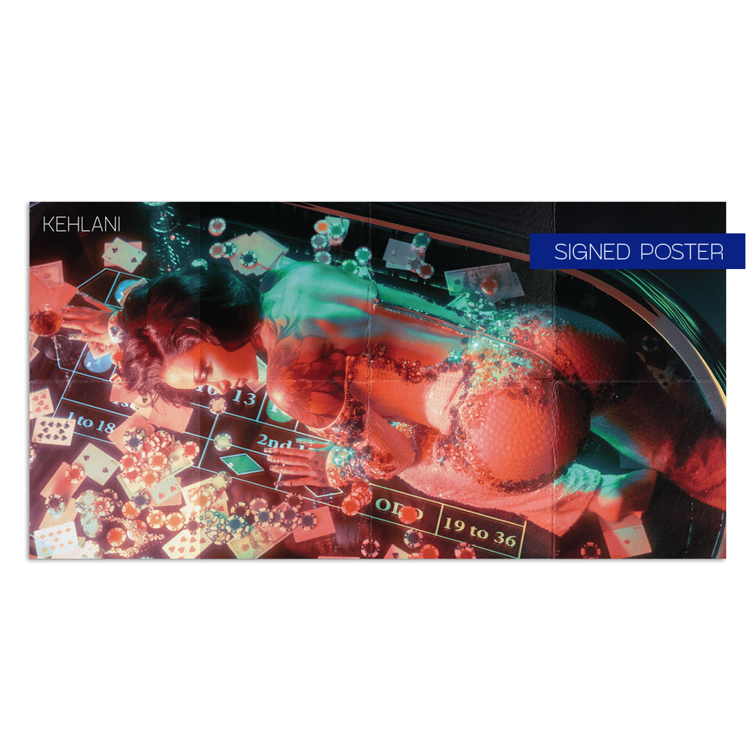 The Kehlani ‘Crash CD with Autographed Poster’ has a Crash CD and a signed, folded poster packaged together inside of a cardstock sleeve. The poster measures 14x19” and is hand signed by Kehlani.